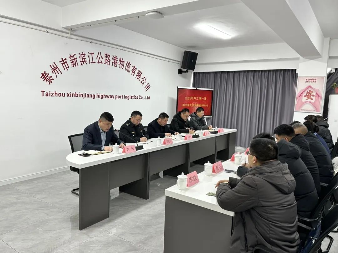 新年伊始即开跑,安全理念要树牢。为确保交通运输企业春节后安全有序复工复产,新年安全生产开好头、起好步,2月7日,泰州市新滨江开发有限责任公司下属子公司泰州市新滨江公路港物流有限公司组织召开安全生产“开工第一课”现场观摩会,市交通运输局四级调研员许建军出席会议并讲话。